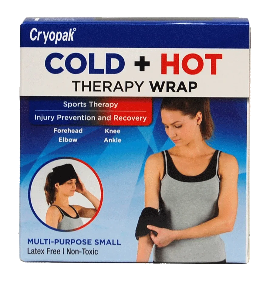 The Cryopak Cold + Hot Therapy Wrap Multi-Purpose Small is designed for sports therapy and injury prevention and recovery. This latex-free and non-toxic wrap provides targeted hot or cold therapy for the forehead, knee, ankle, and elbow. Perfect for both professional and home use, it offers reliable and reusable therapy to reduce pain, swelling, and stiffness.